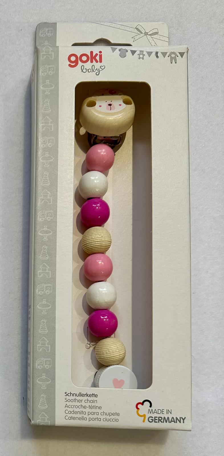 Porta ciuccio orsetto rosa in legno di acero