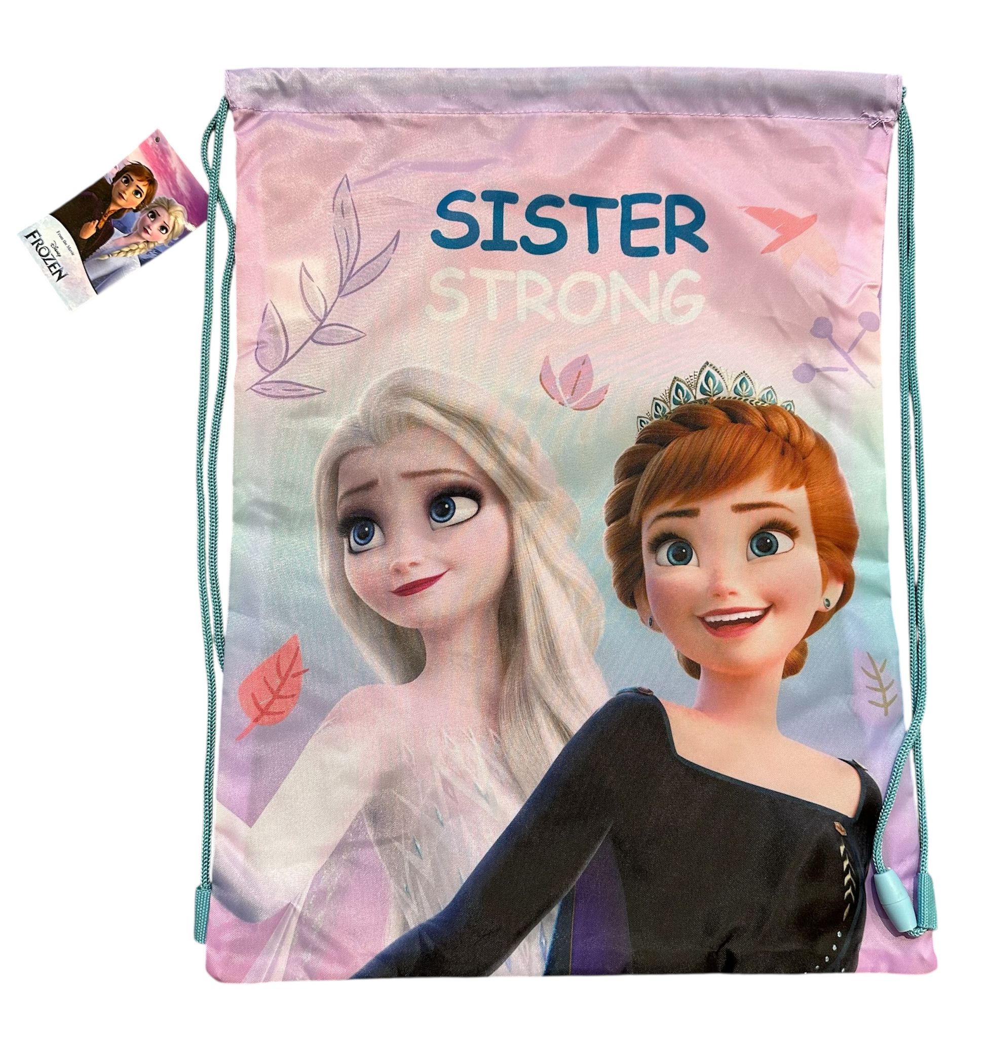 Simpatico sacco con lacci di Frozen adatto per l’attrezzatura sportiva durante le attività ricreative, da portare in viaggio durante le vacanze e per tantissimi altri usi.