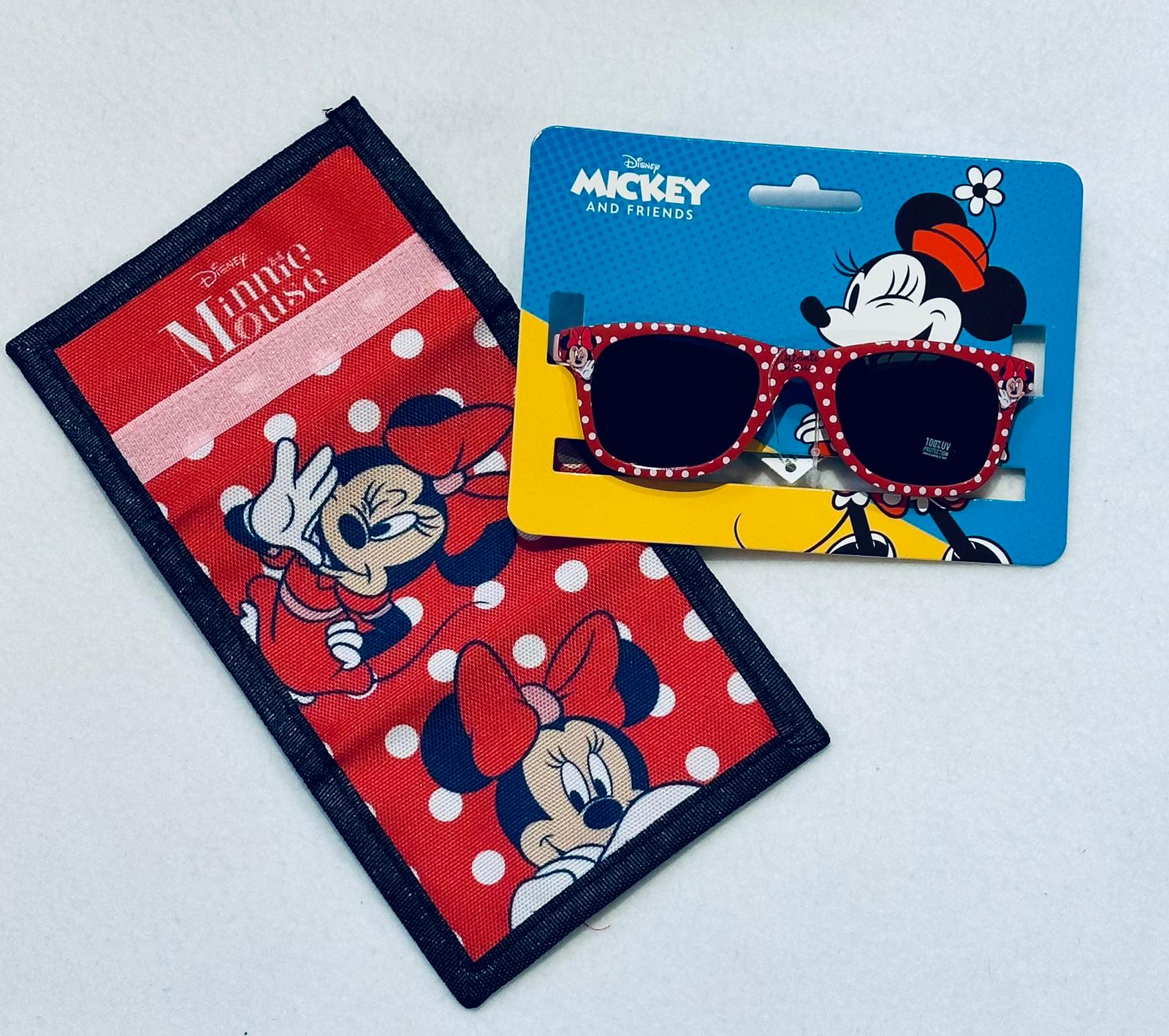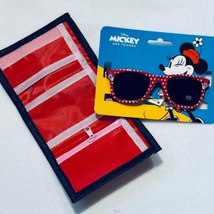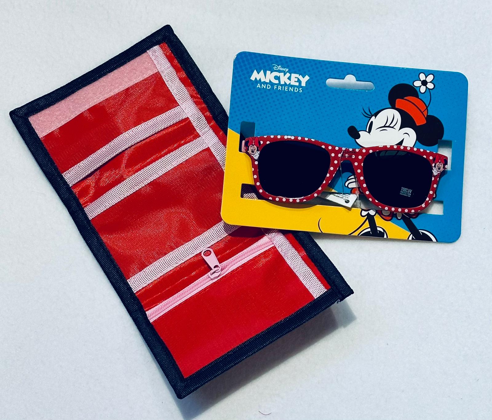 Simpatico set composto da un paio di occhiali da sole 100% UV protection e un borsellino con chiusura a velcro.