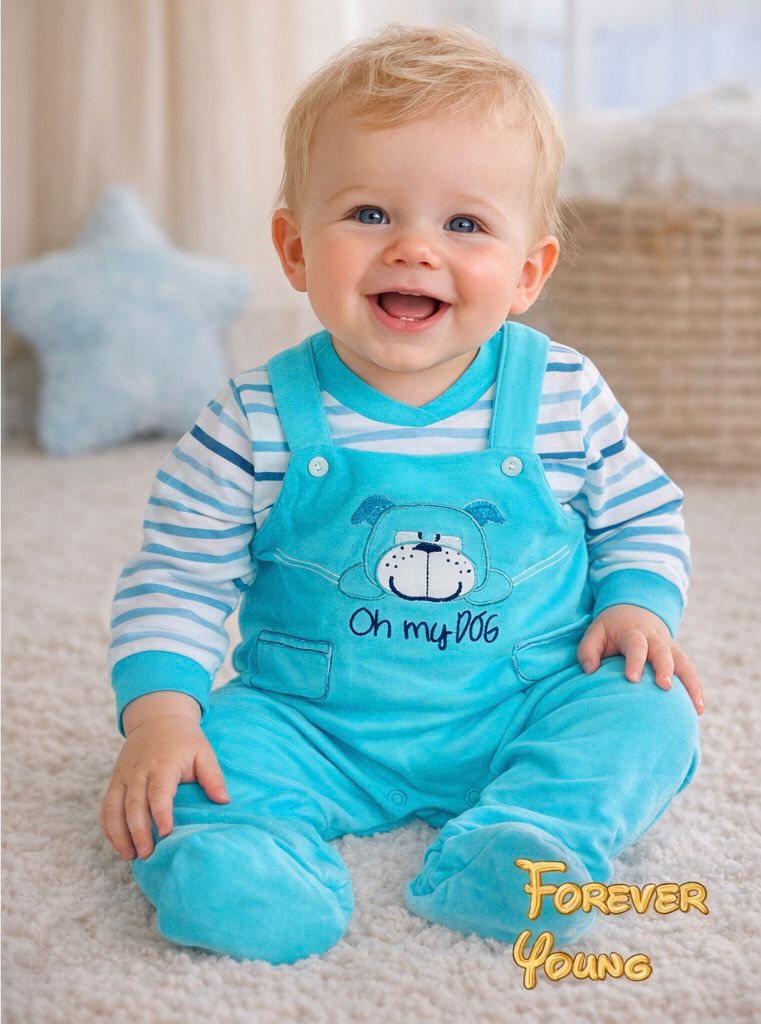 Dolcissima tutina intera in cotone con il ricamo di un cagnolino e la scritta oh my dog.